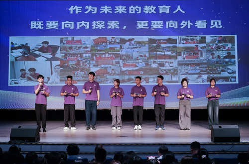 随后,老生代表分享了他们的成长体悟。2023级教育学类本科生乃飞沙·尼合买提通过新疆支教等实践项目,将“立德树人”融入真实课堂,并引入AI互动课程创新教学方式。结合两年在校经历,她鼓励新生主动融入大学氛围,在多元文化中拓展视野、成长自我。2024级高等教育学硕士研究生高乐川介绍了自己的科研科创和基层实践经历,将自己“只要找对舞台、用心投入、做到极致,就必有所获,还可能有意想不到的硕果”的座右铭与新生共勉。2024级课程与教学系博士研究生熊熙然从一线教育实践中发现问题,选择在师大深入研究实践中的真问题,他强调构建中国本土的教育话语体系的重要性,激励大家共同建设教育强国。温暖而坚定的话语,凝聚着来自学长学姐的关怀与力量,深深鼓舞了在场的每一位新生。