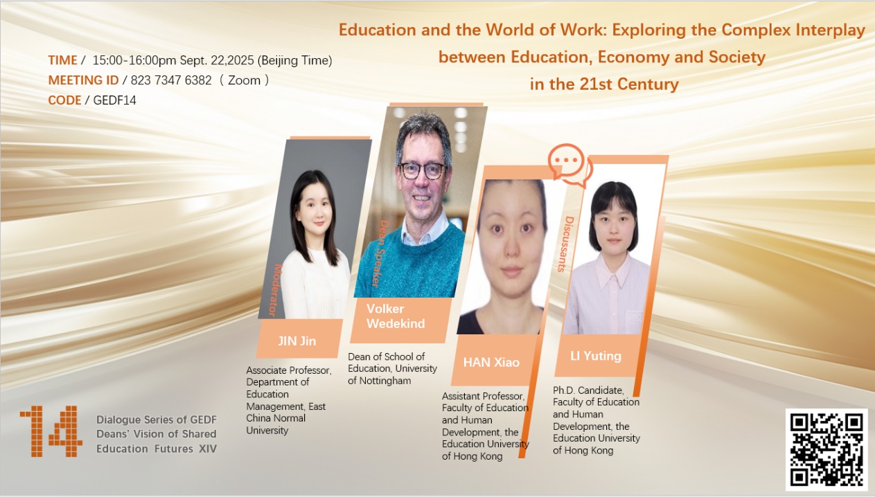 本次活动由英国诺丁汉大学教育学院院长Volker Wedekind教授担任主讲嘉宾,就“Education and the World of Work: Exploring the Complex Interplay between Education, Economy and Society in the 21st Century”这一主题进行分享。香港教育大学教育及人类发展学院助理教授韩笑,香港教育大学教育及人类发展学院博士生李宇婷受邀参与对话。我校600cc全讯白菜网教育管理学系副教授金津担任本次活动主持人。