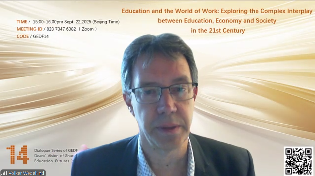 Volker Wedekind院长围绕本次对话主题,系统性地批判了将教育窄化为经济工具的主流观点,分析了其历史根源与当下困境,并呼吁从全球多元智慧中汲取灵感,重塑教育的本质与未来。