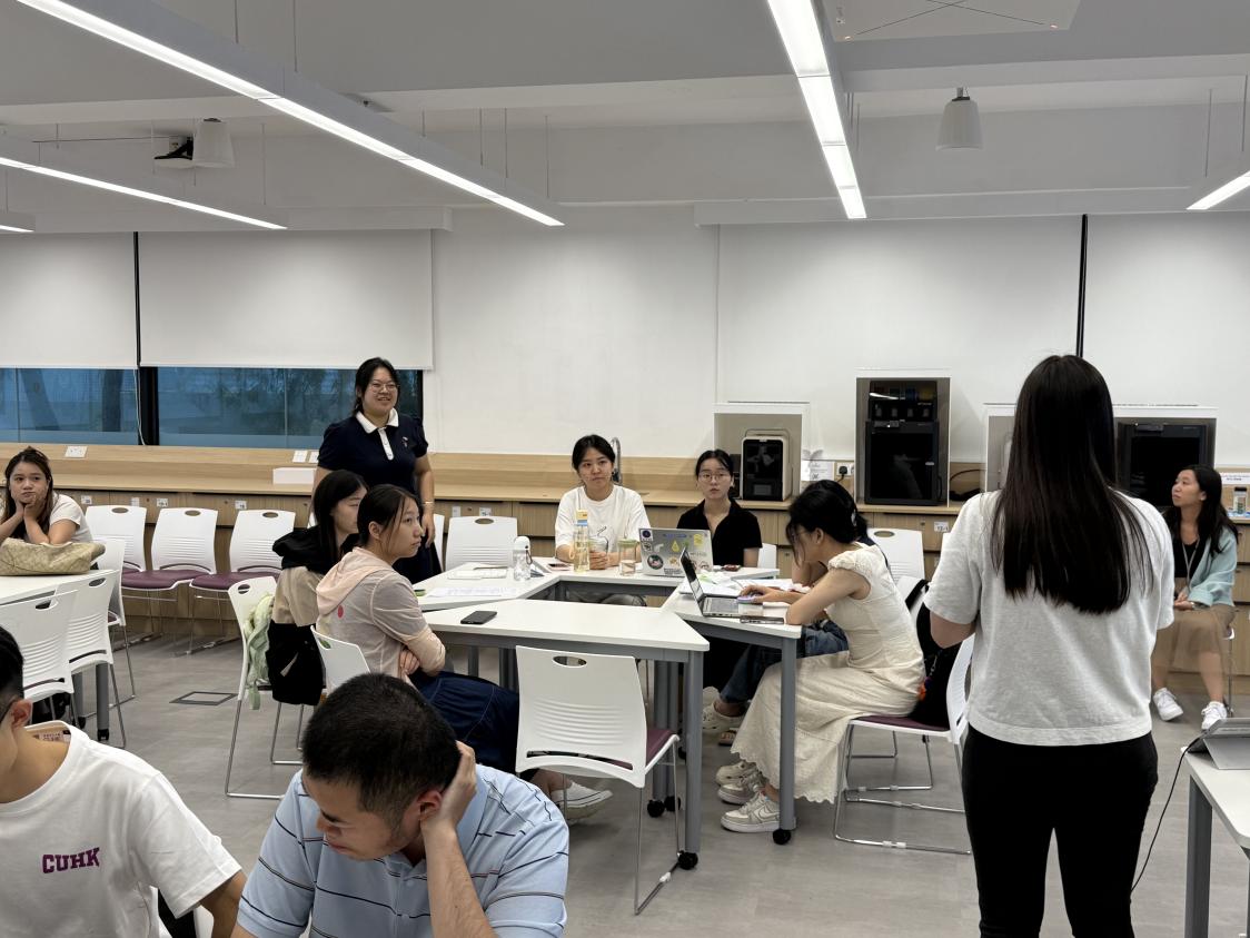 随后,港中大教育学院另外三位优秀博士生分别介绍 “AI在高等教育中的应用”等不同研究领域,并与刘婷博士分组与交流团学生展开近两小时的深度交流,内容涵盖求学心路、压力调节,两地教育体系差异等。大家坦诚分享、热烈讨论,增进了两校学子友谊,也为参访团学子的学术规划提供了宝贵参考。